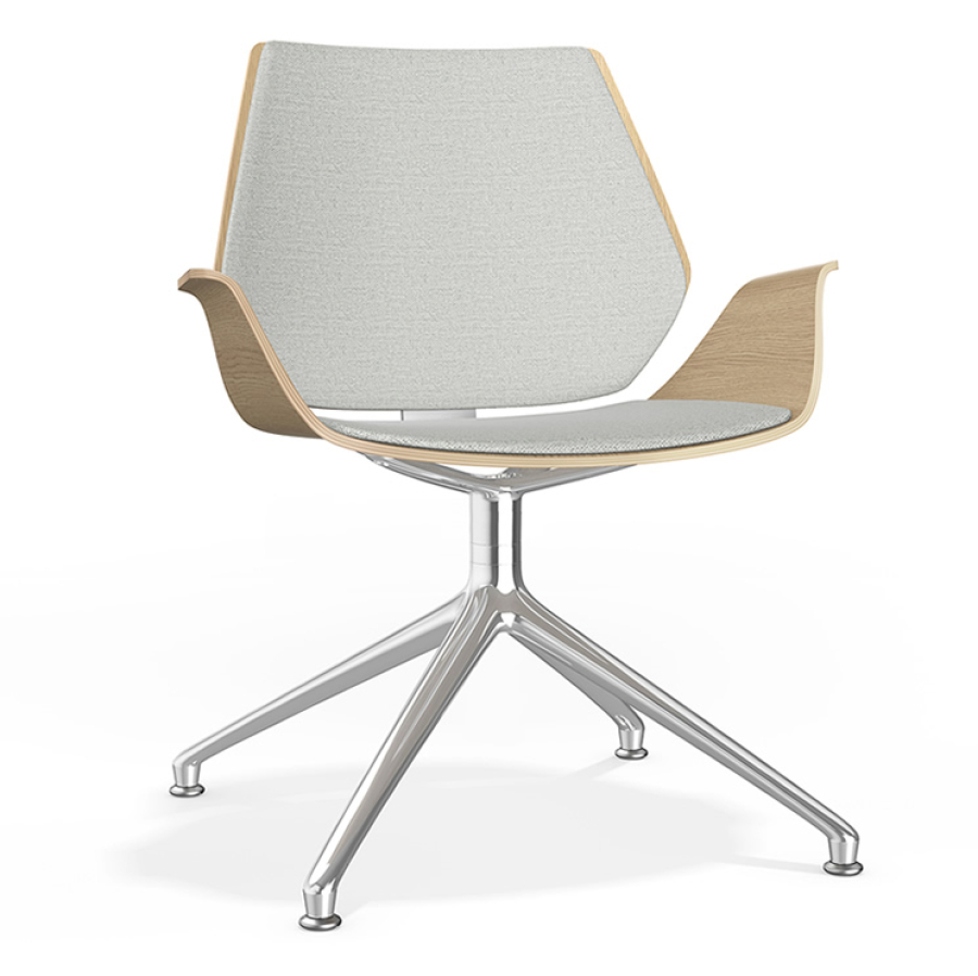 Centuro ist in Eichen-Furnier und Nussbaum-Furnier erhältlich. Für den ultimativen Komfort kann man sich für einen gepolsterten Sitz und eine gepolsterte Rückenlehne oder einen vollgepolsterten Stuhl entscheiden. Neben einer hervorragenden Qualität behält dieser Stuhl seine charakteristischen Linien bei. Mit seiner Vielfalt an Gestellvarianten ist Centuro ideal für Konferenzen, Meetings und Lounge-Events. Centuro ist sowohl mit niedriger als auch mit hoher Rückenlehne erhältlich und bei den Drehgestellen optional höhenverstellbar. Der flexible Bügel, der die Sitzfläche mit der Rückenlehne stilvoll verbindet, bietet in Kombination mit der vorgeformten Sitzschale ein hohes Maß an Komfort.