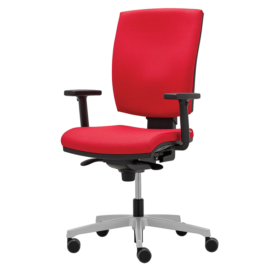 Mechanik: ST Synchron Mechanik – Sitz und Rückenlehne folgen den Bewegungen des Sitzenden synchron im richtigen Winkelverhältnis. Möglichkeit von Arretierung in 7 Positionen. Stufenlose Einstellung des Rückenlehnen Gegendrucks im Umfang ca. 45 – 120 kg Körpergewicht.